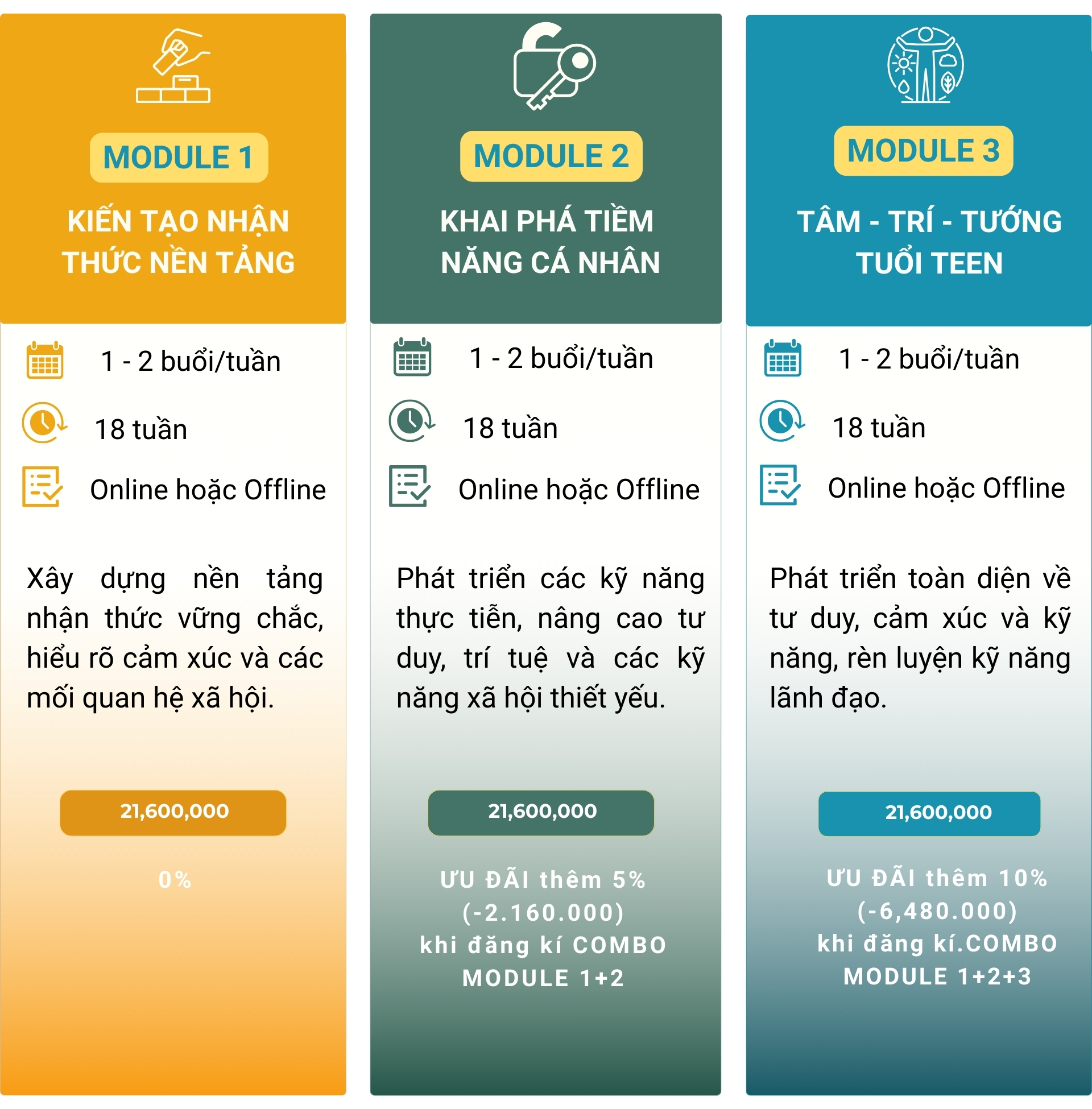- Giúp con hiểu chính mình, thiết lập mối quan hệ tốt đẹp, nuôi dưỡng đam mê, định hướng tương lai, quản trị cảm xúc và rèn luyện sức bật tinh thần.