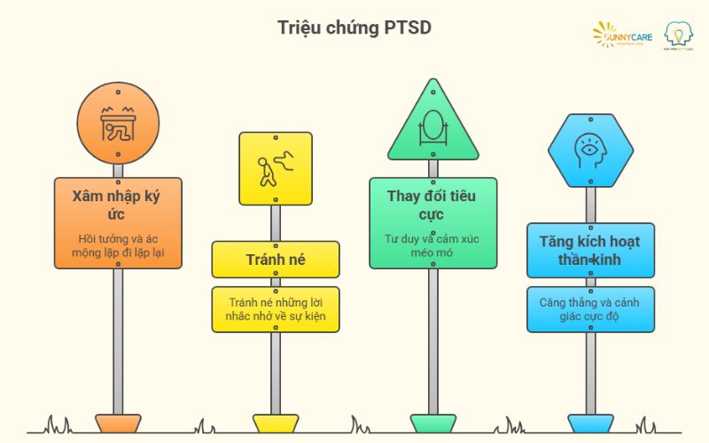 Tổ hợp triệu chứng PTSD xoay quanh bốn nhóm chính:
